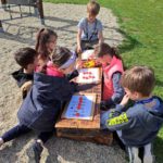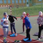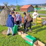 V areálu byly pro žáky 1. stupně připraveny aktivity přibližující třídění odpadů, kompostování, recyklace. Zpestřením byly také pohybové aktivity.