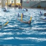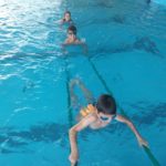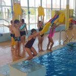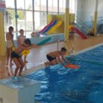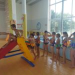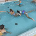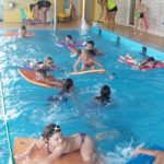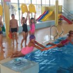 V plavecké škole byly děti rozděleny do skupinek – a hurá do vody zlepšovat plavecké dovednosti. Žáci se během kurzu naučí první plavecké styly, skoky do vody, splývání a dýchání do vody.