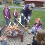 Na školní zahradě si děti mohly na ohništi opéct malé trdelníky. Občerstvení, zejména žádané párky v rohlíku, zajistili chlapci a děvčata z 9. třídy.